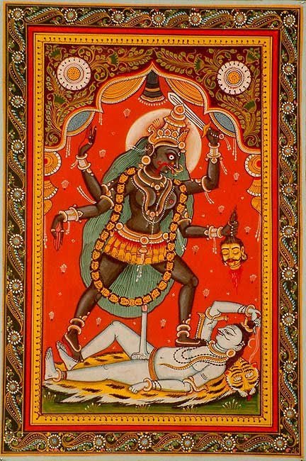 La diosa Kali es triple: representa la creación, la conservación y la destrucción. Este último aspecto, el de la destrucción, es el más conocido en occidente y simboliza la muerte y la venganza justa.