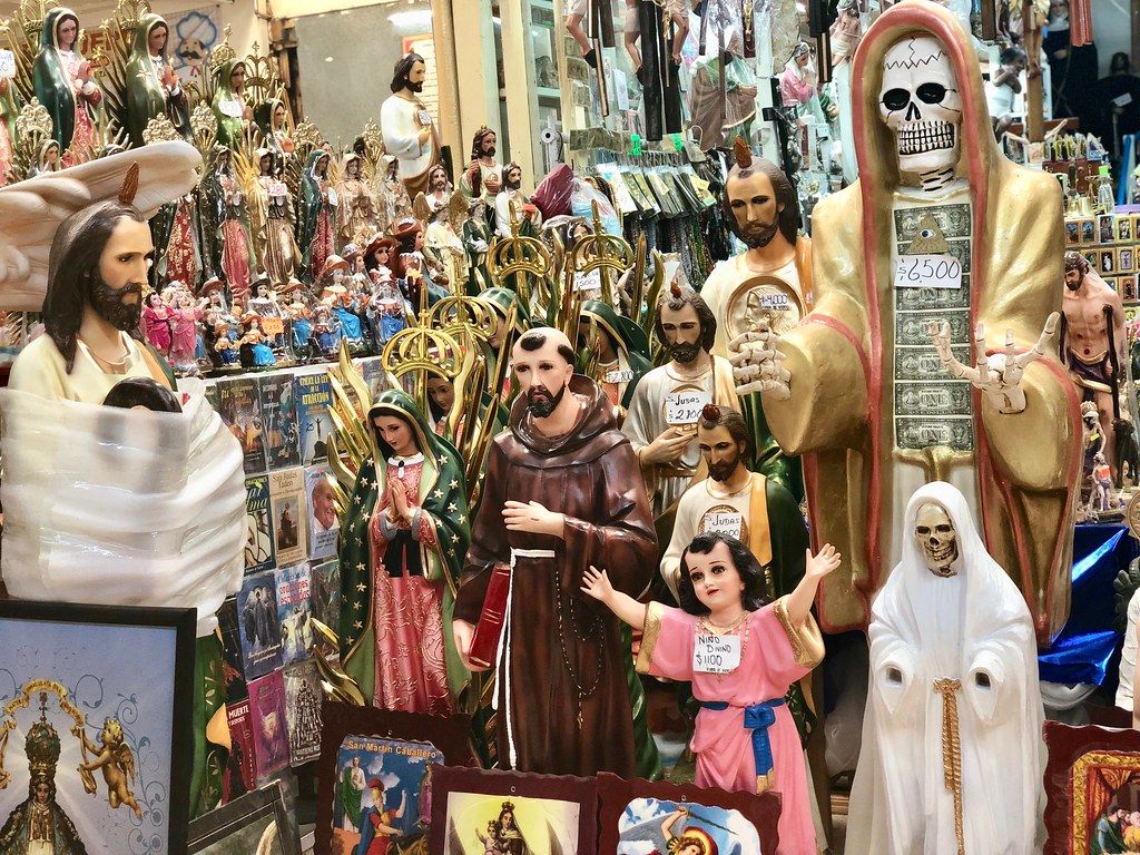 Basta por caminar por el mercado de Sonora para encontrarnos a Buda, La Virgen de Guadalupe, La Santa Muerte, Jesucristo, San Judas y los Orishas acomodados en los puestos, unos por separado, otros juntos en el mismo altar en una extraña mezcolanza espiritual; todos compartiendo la casa de la Fe, la casa de la esperanza.